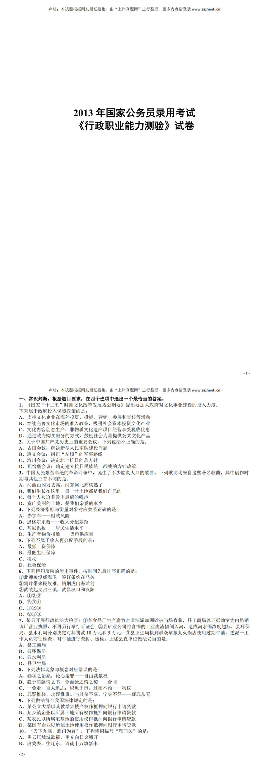 本站所有试题均经过人工校对与复核,一般不会有残缺,所制作的文档均经过人工排版,下载后可直接打印。本站试题资源均经过人工处理校核,不会添加任何水印,保证卷面整洁清爽,方便您打印做题复习。