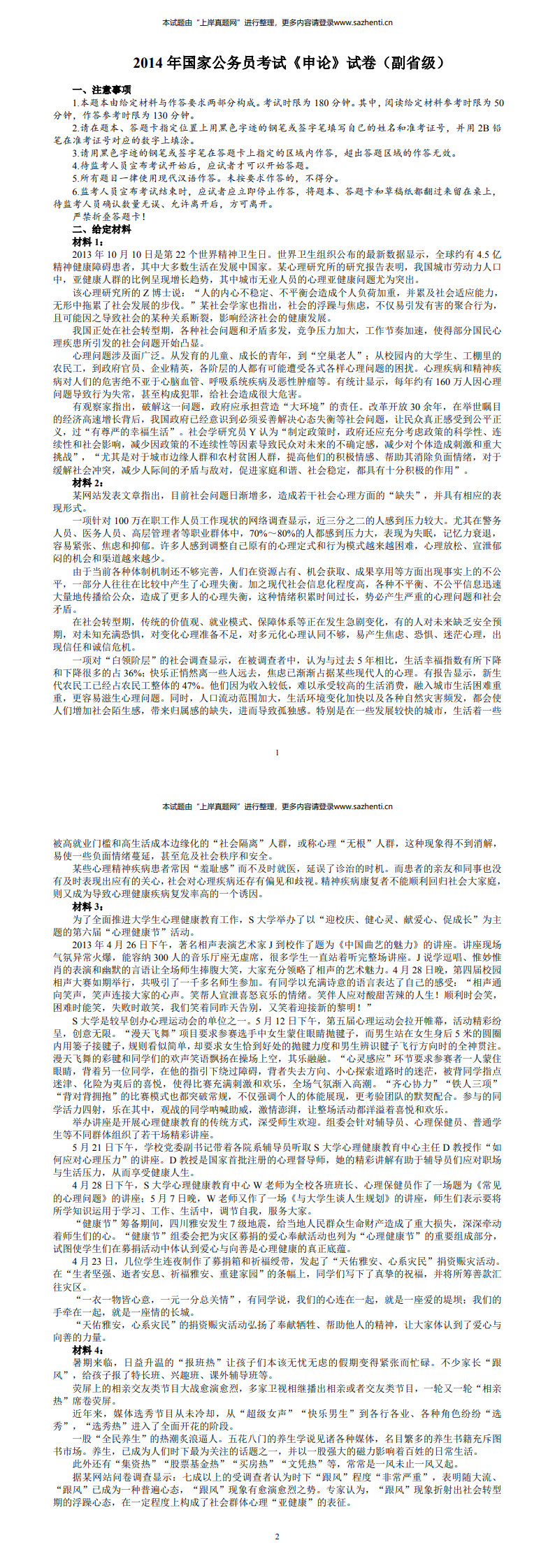 2014年国家公务员考试《申论》试卷及答案(副省级)