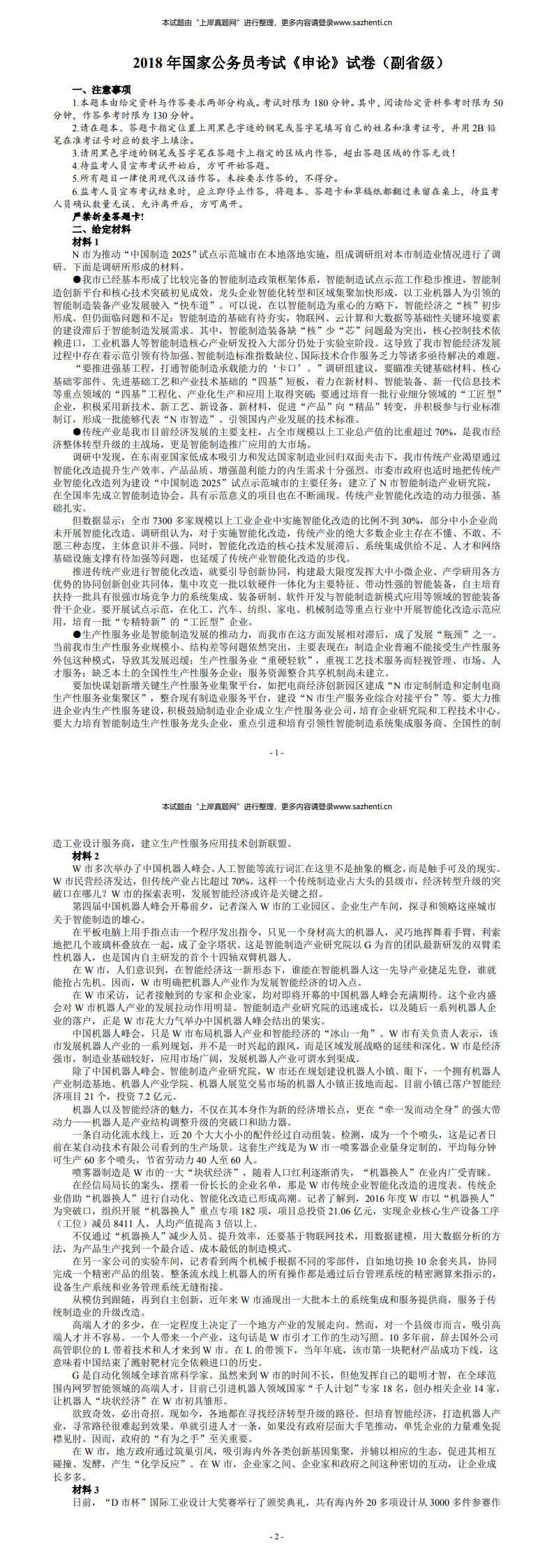 2018年国家公务员考试《申论》试卷及答案(副省级)
