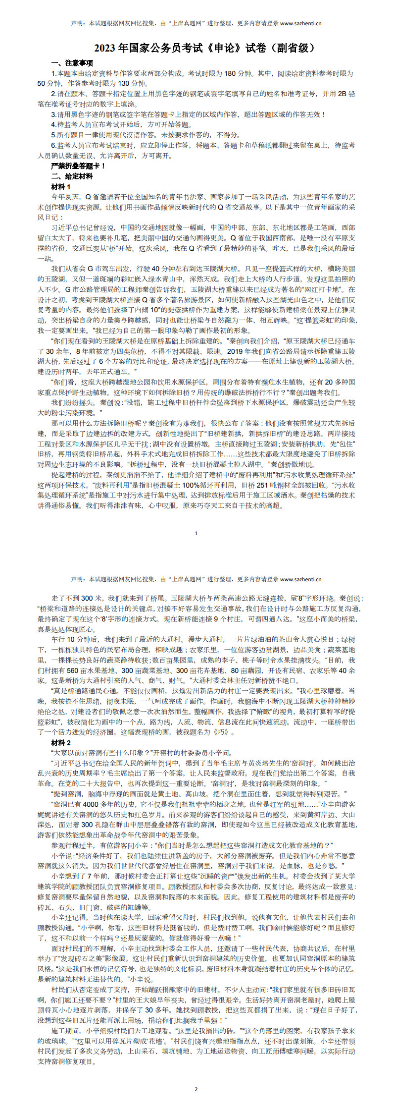 2023年国家公考员考试《申论》试卷及答案(副省级)