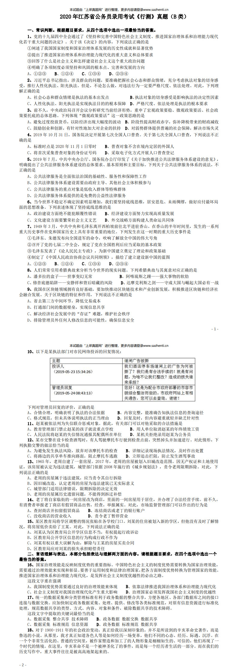 2020年江苏公务员考试《行测》真题及答案解析(B类)