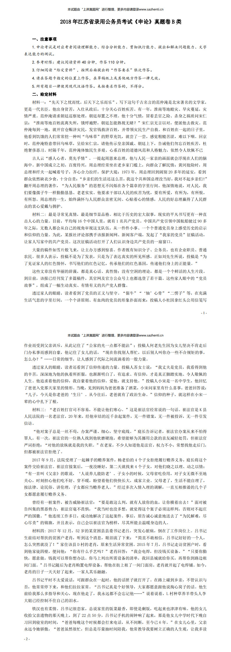 2018年江苏公务员考试《申论》真题(B类卷)及解析