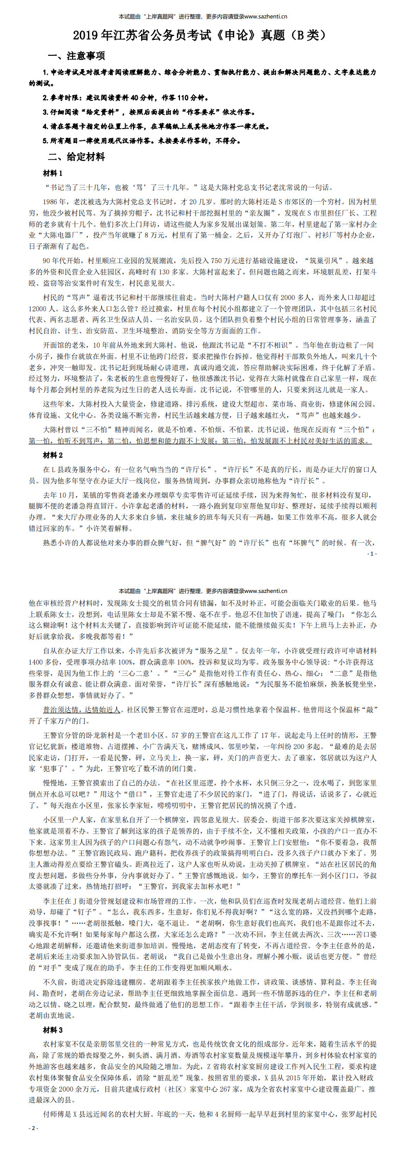 2019年江苏公务员考试《申论》真题(B类)及参考答案