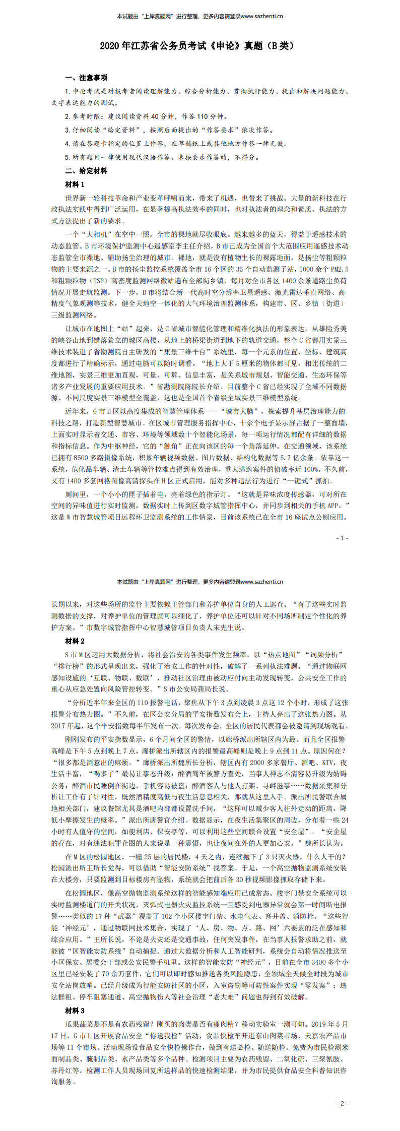 2020年江苏公务员考试《申论》真题(B类)及参考答案