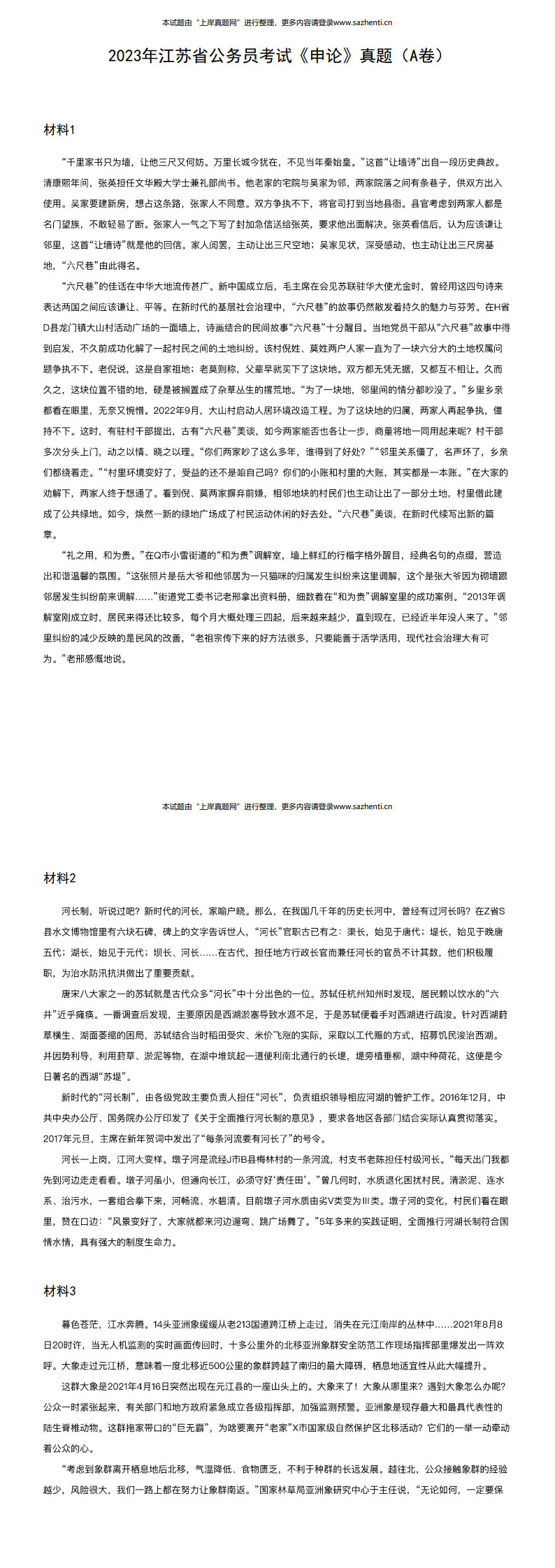 2023年江苏公务员考试《申论》真题(A卷)及参考答案