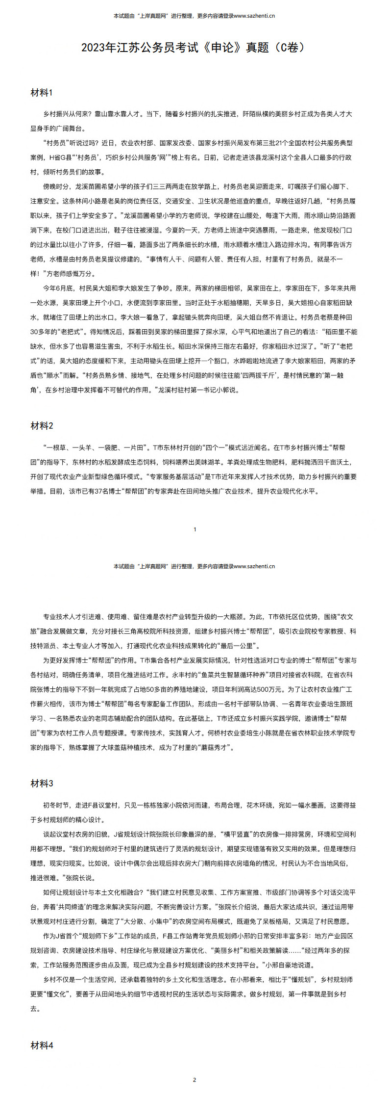 2023年江苏公务员考试《申论》真题(C卷)及参考答案